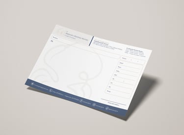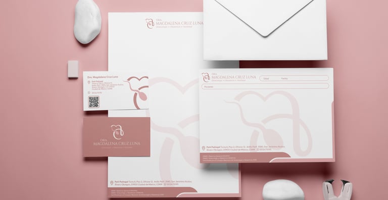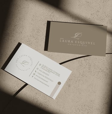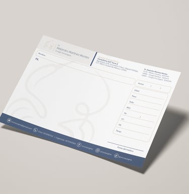 Diseñamos piezas clave como recetarios, tarjetas personales y hojas membretadas, entregando archivos técnicos listos para producción. Nos aseguramos de que cada documento mantenga una estética impecable y la coherencia visual que su práctica profesional requiere."